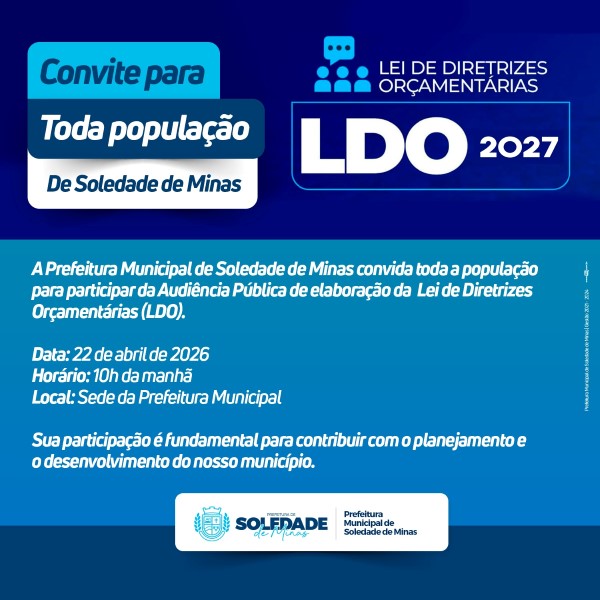 Data: 03 de março de 2026 Horário: 18h Local: Câmara Municipal de Soledade de Minas